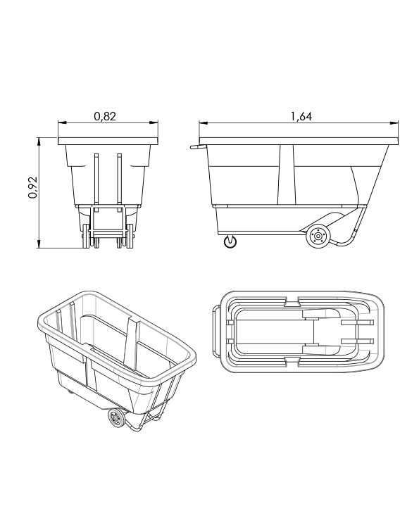 Materiales: Construído en polietileno de alto impacto y baja porosidad, el contenedor basculante es ideal para la industria siderúrgica, automotriz, de la construcción y empresas de servicios. Gira sobre sí mismo y es fácil de volcar.